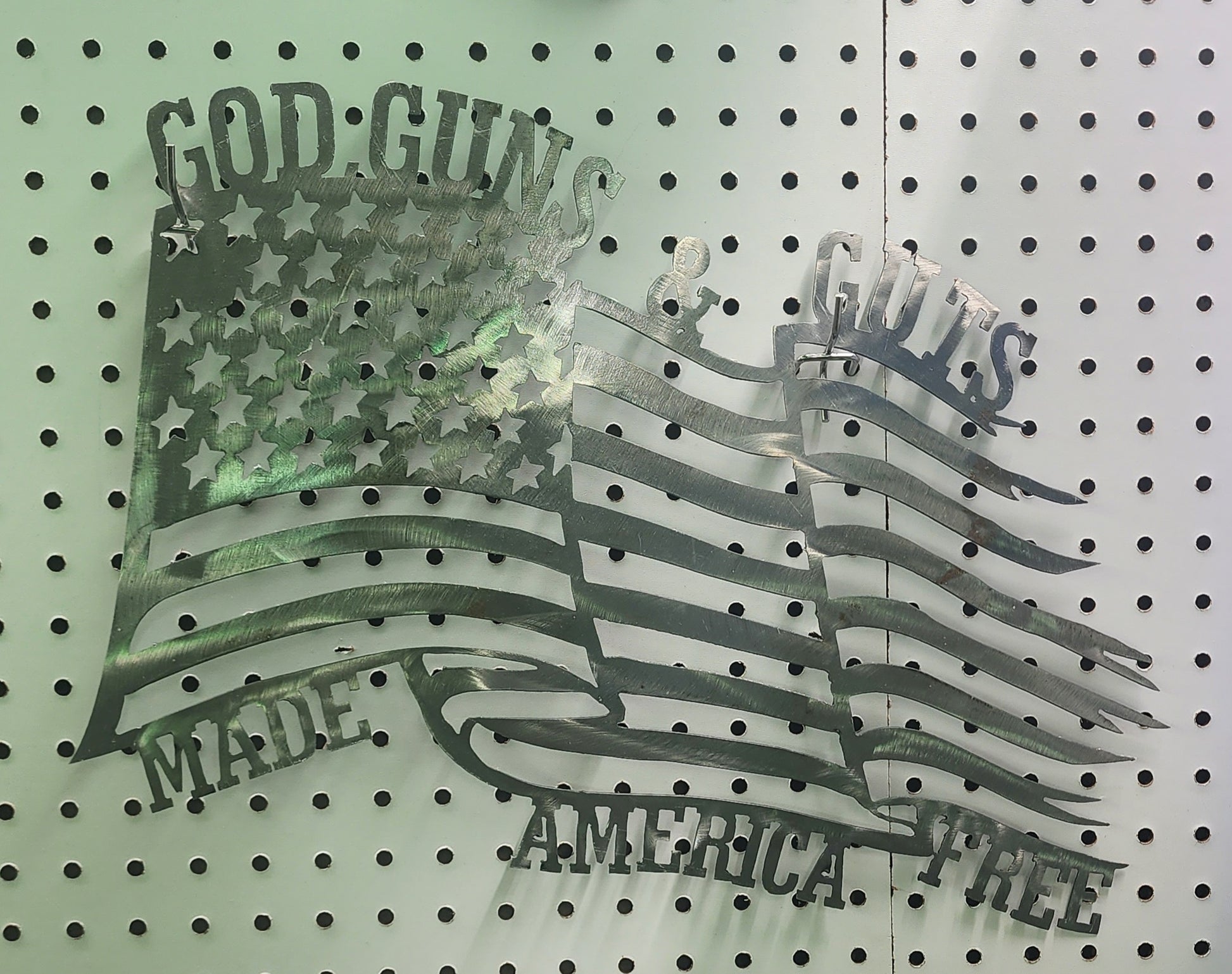 CNC Plasma Metal Art - God & Guns Made America Free - 18in Wide x 13in Tall