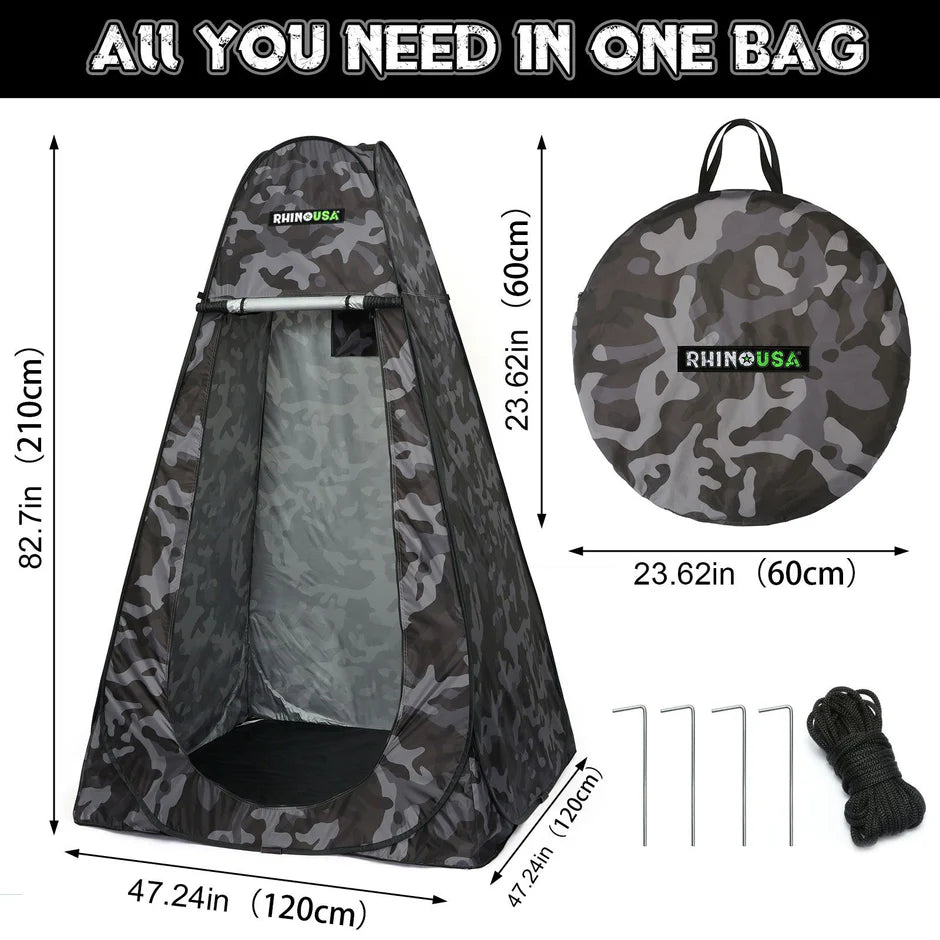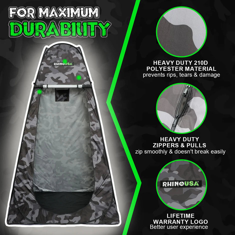 Introducing the Rhino USA Pop-up Privacy Tent – your go-to solution for on-the-go privacy and convenience. Designed with campers and adventurers in mind, this camo-patterned pop-up tent offers instant shelter wherever your journey takes you. Whether changing after a day at the beach, seeking a private space at outdoor events, or setting up a makeshift shower during camping trips, the Rhino USA Privacy Tent ensures a swift and discreet experience.